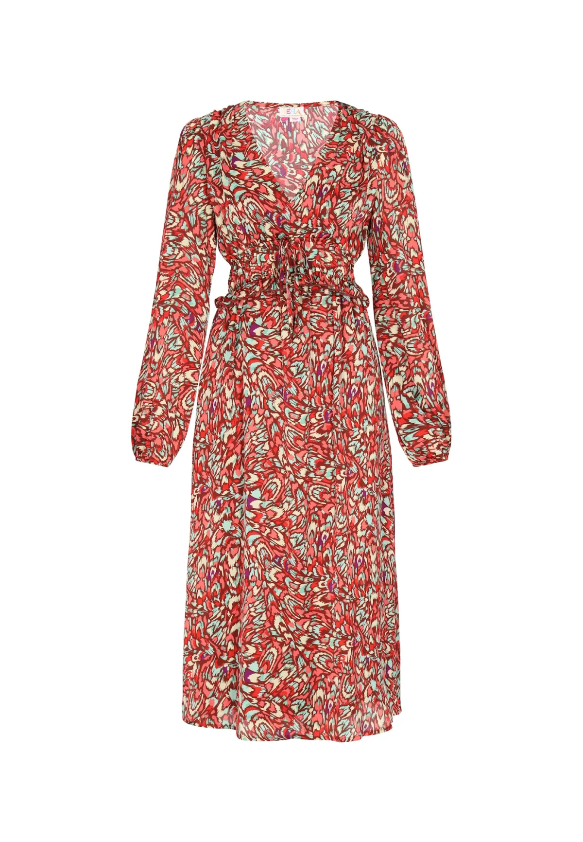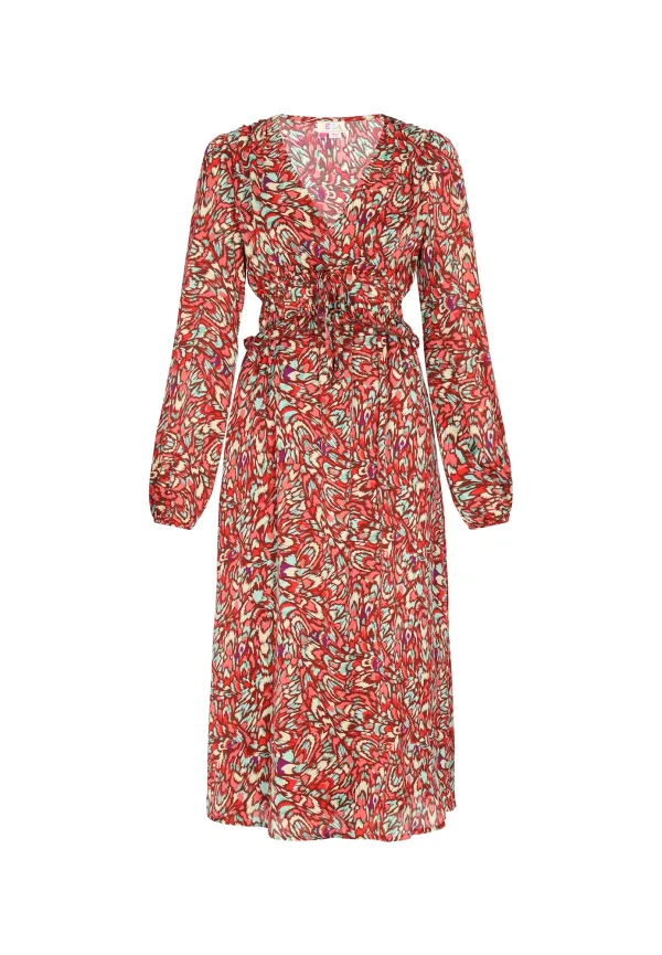 IZIA Jurk turquoise / pasteelgeel / zalm roze / rood