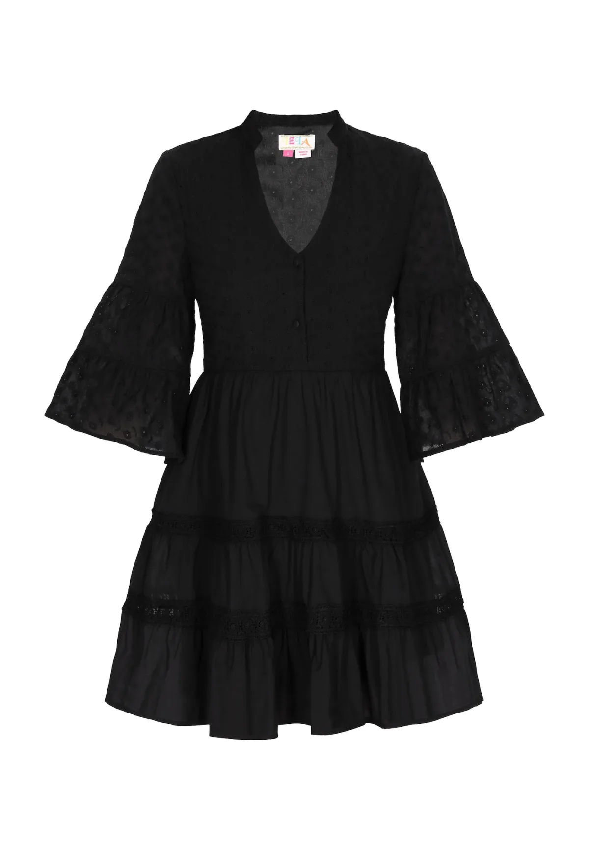 Design: Gevoerde zoom/rand, Trompetmouwen; Type sluiting: Knoopsluiting; Materiaal: Katoen; Halstype: Opstaande kraag; Motief: Effen; Kraag: Zonder kraag; Details: Kant, Volant, Plooien, Gedrapeerd; Extra’s: Met textuur, Voelt zacht aan; Lengte: Kort/mini; Snit: Uitlopend; Pasvorm: Normale pasvorm; Armlengte: Driekwart mouw