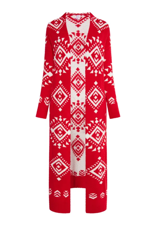 IZIA Longcardigan Dames rood wit
