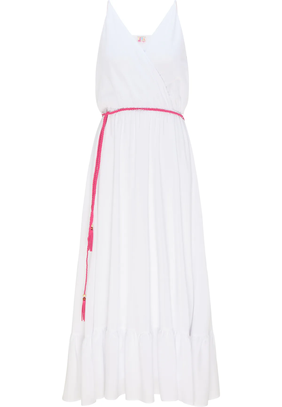 De zomer kan komen! Met deze kleurrijke maxi-jurk van IZIA ben je goed voorbereid op het warme seizoen. De spaghettibandjes, de klassieke V-halslijn, de elastische taille en de zuivere viscose maken de jurk tot een luchtige must-have in uw garderobe. Ook de afneembare gevlochten riem geeft de jurk een bepaalde touch. Met sandalen of mooie slippers bent u perfect gestyled voor de warme zomerdagen.