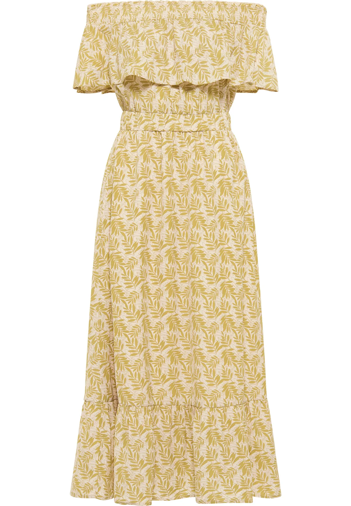 Geen vulling De maxi-jurk van IZIA met een all-over bloemenprint is geïnspireerd op de zon en een goed humeur. Het ontwerp is gemaakt van soepel, kreukvrij materiaal en heeft een off-shoulder silhouet en wordt geaccentueerd met een volant aan de zoom van de rok. De wijde halslijn heeft een brede, gesmokte zoom en een zwierige ruche. In de taille is een sterke, elastische band verwerkt, die een perfecte pasvorm garandeert. Met dit zomerjurkje komt het zomergevoel vanzelf. Jurk