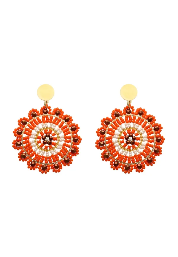 Specificaties: IZIA Oorbellen goud / oranjerood / donkerrood / parelwit