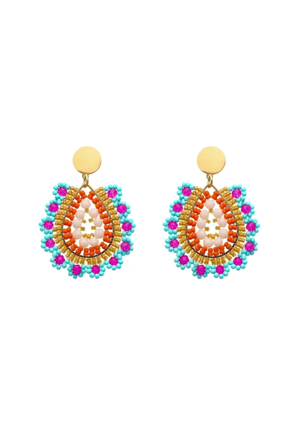Specificaties: IZIA Oorbellen hemelsblauw / goud / oranje