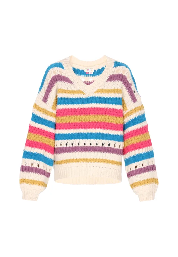 IZIA Oversized trui azuur / mauve / framboos / wolwit Prijzen