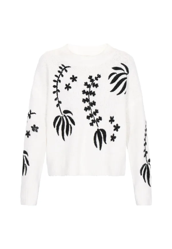 Design: Geribbelde kraag, Geribbeld gebreid; Type sluiting: Slip; Materiaal: Knitwear; Halstype: Ronde hals; Motief: Bloemenprint; Details: Borduursels; Extra's: Fully fashioned, Met textuur; Pasvorm: Losse pasvorm; Armlengte: Lange mouw; Lengte: Normale lengte