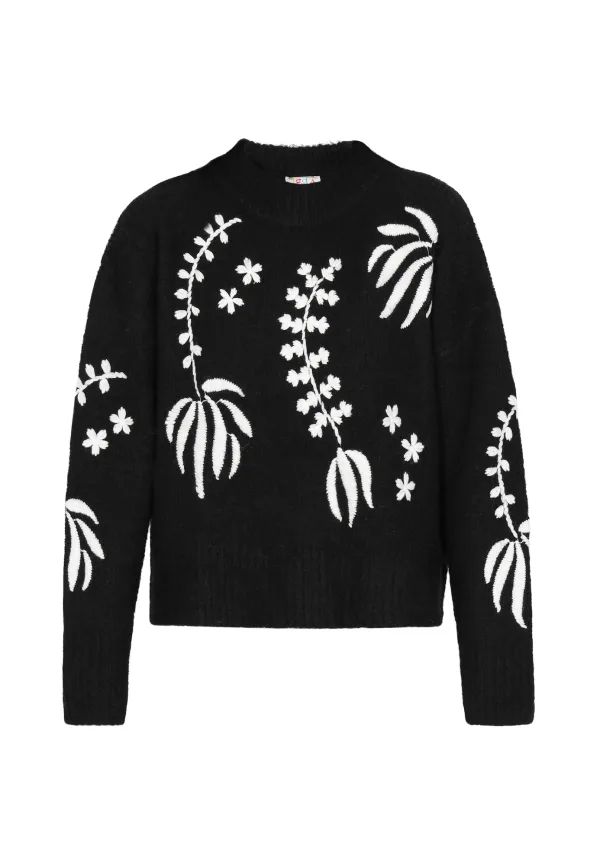 Design: Geribbelde kraag, Geribbeld gebreid; Type sluiting: Slip; Materiaal: Knitwear; Halstype: Ronde hals; Motief: Bloemenprint; Details: Borduursels; Extra's: All-over patroon, Label patch/label flag; Pasvorm: Losse pasvorm; Armlengte: Lange mouw; Lengte: Normale lengte