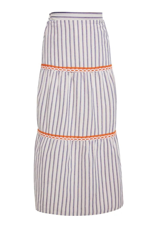 Design: Rechte zoom; Materiaal: Katoen; Motief: Gestreept; Rokvorm: A-lijn rok; Details: Kant, Gedrapeerd; Extra's: All-over patroon; Lengte: Lang/maxi; Pasvorm: Normale pasvorm