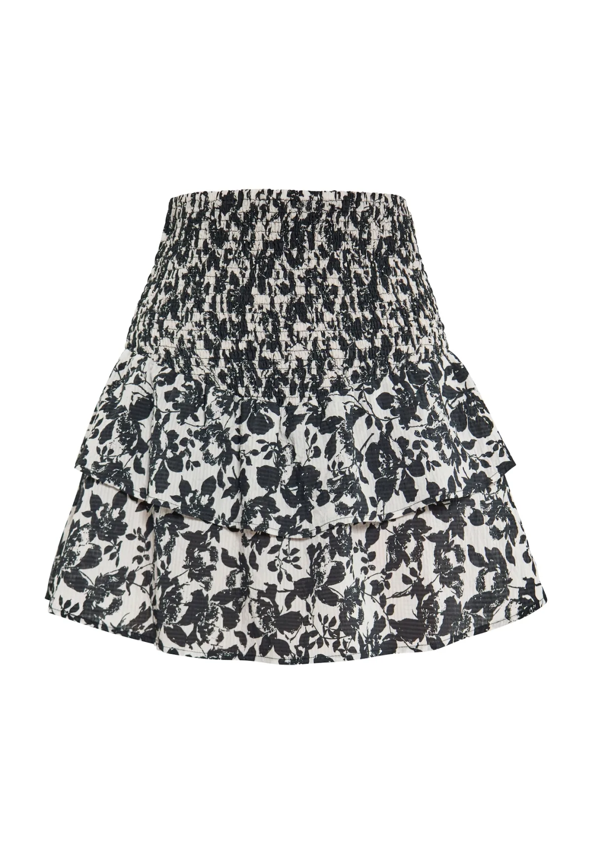 Deze minirok met charmante bloemenprint is perfect voor feestjes en zomerdagen. Het gelaagde ontwerp creëert een volantige, volumineuze look met ruches aan de randen voor extra flair. De elastische tailleband zorgt voor een comfortabele pasvorm, terwijl de lichtgewicht stof beweging en flow verbetert. Het consistente bloemenpatroon op elke laag voegt een vleugje vrouwelijkheid toe aan dit stijlvolle exemplaar. Rock