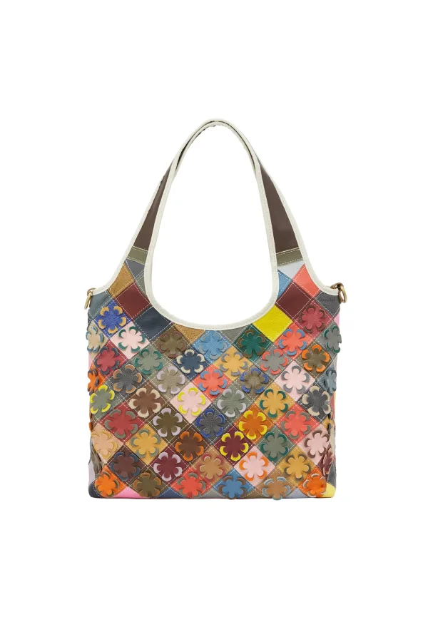 Design: Afneembare banden, Ritssluiting, Ritsvak buiten; Type sluiting: Ritssluiting; Materiaal: Leer; Motief: Bloemenprint; Materiaal: Glad leer; Extra's: Contrasterende naden; Hengsellengte: Lange schouderriemen, Korte schouderriemen