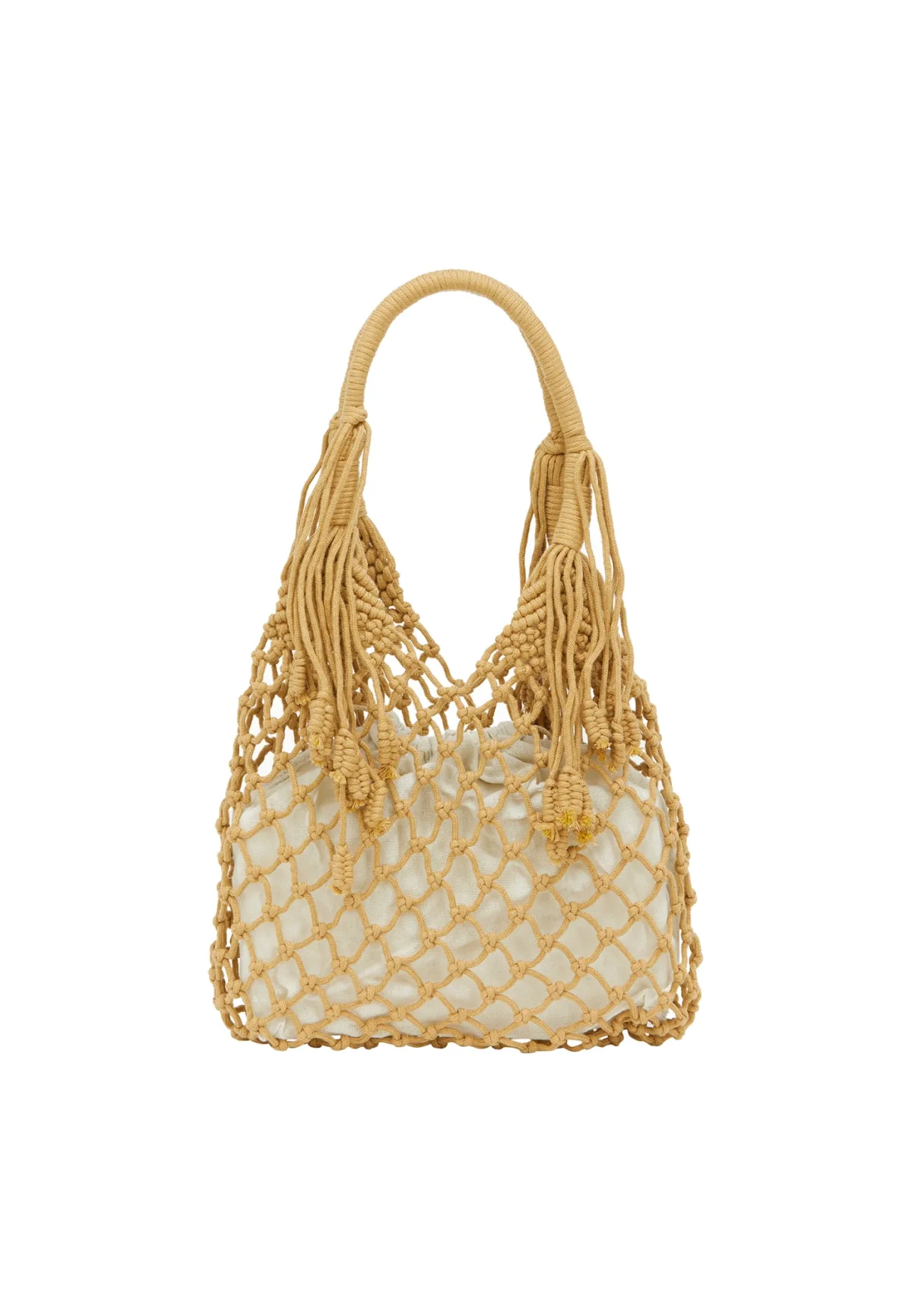 Design: Ruim hoofdvak; Type sluiting: Koord; Materiaal: Gehaakt; Motief: Effen; Extra's: Gevlochten structuur, Franjes; Maat: Klein; Hengsellengte: Korte schouderriemen