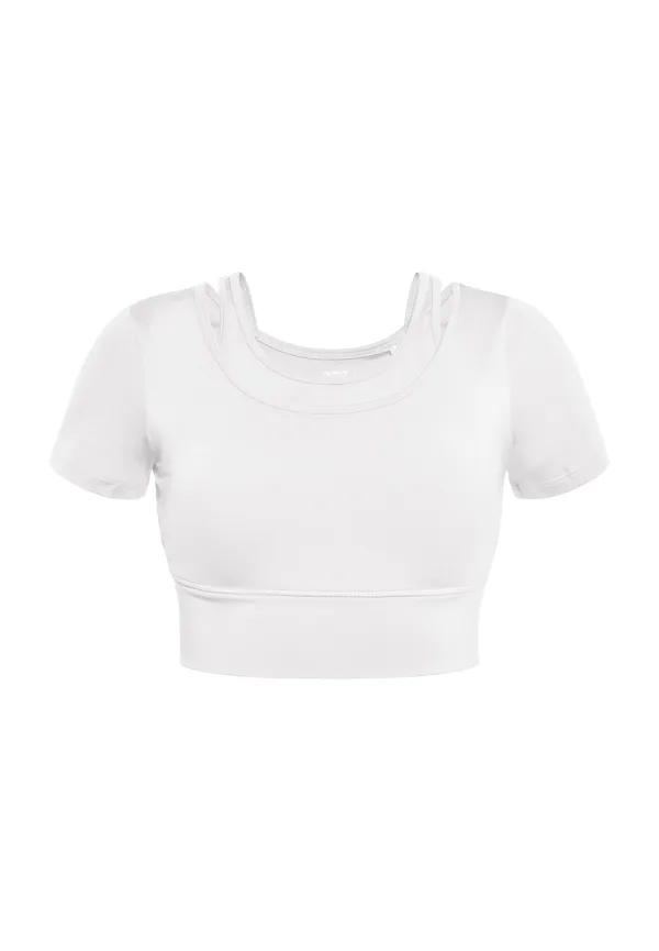 Design: Gevoerde zoom/rand; Halstype: Ronde hals; Motief: Effen; Details: Cut-outs; Extra's: Op staal naden; Pasvorm: Slanke pasvorm; Armlengte: Kwartmouw; Lengte: Korte pasvorm