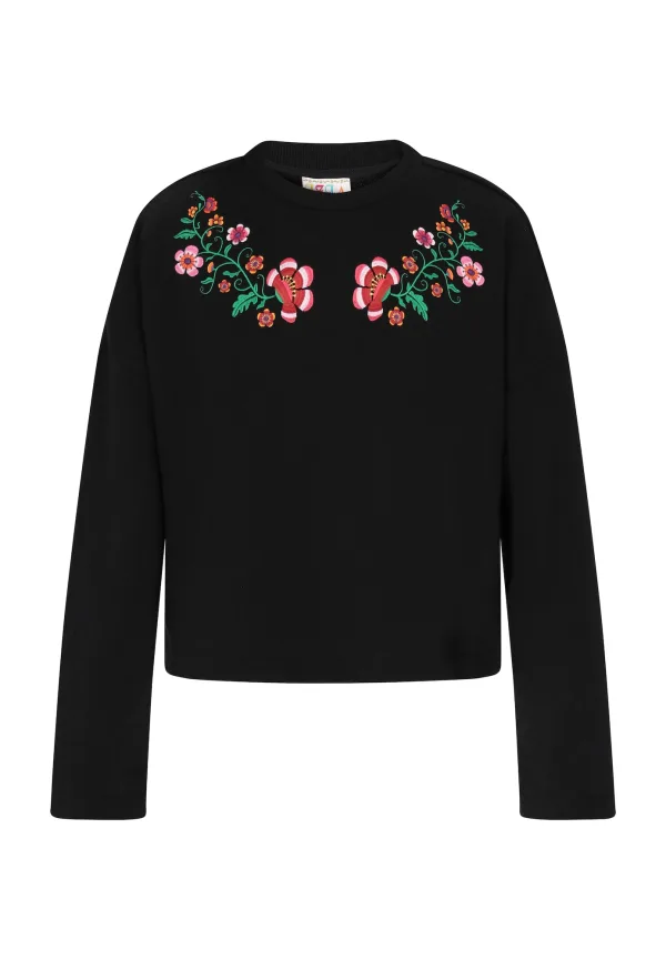 Design: Geribbelde kraag; Materiaal: Sweatstof; Halstype: Ronde hals; Motief: Bloemenprint; Details: Borduursels; Extra's: Voelt zacht aan; Pasvorm: Losse pasvorm; Armlengte: Lange mouw; Lengte: Normale lengte