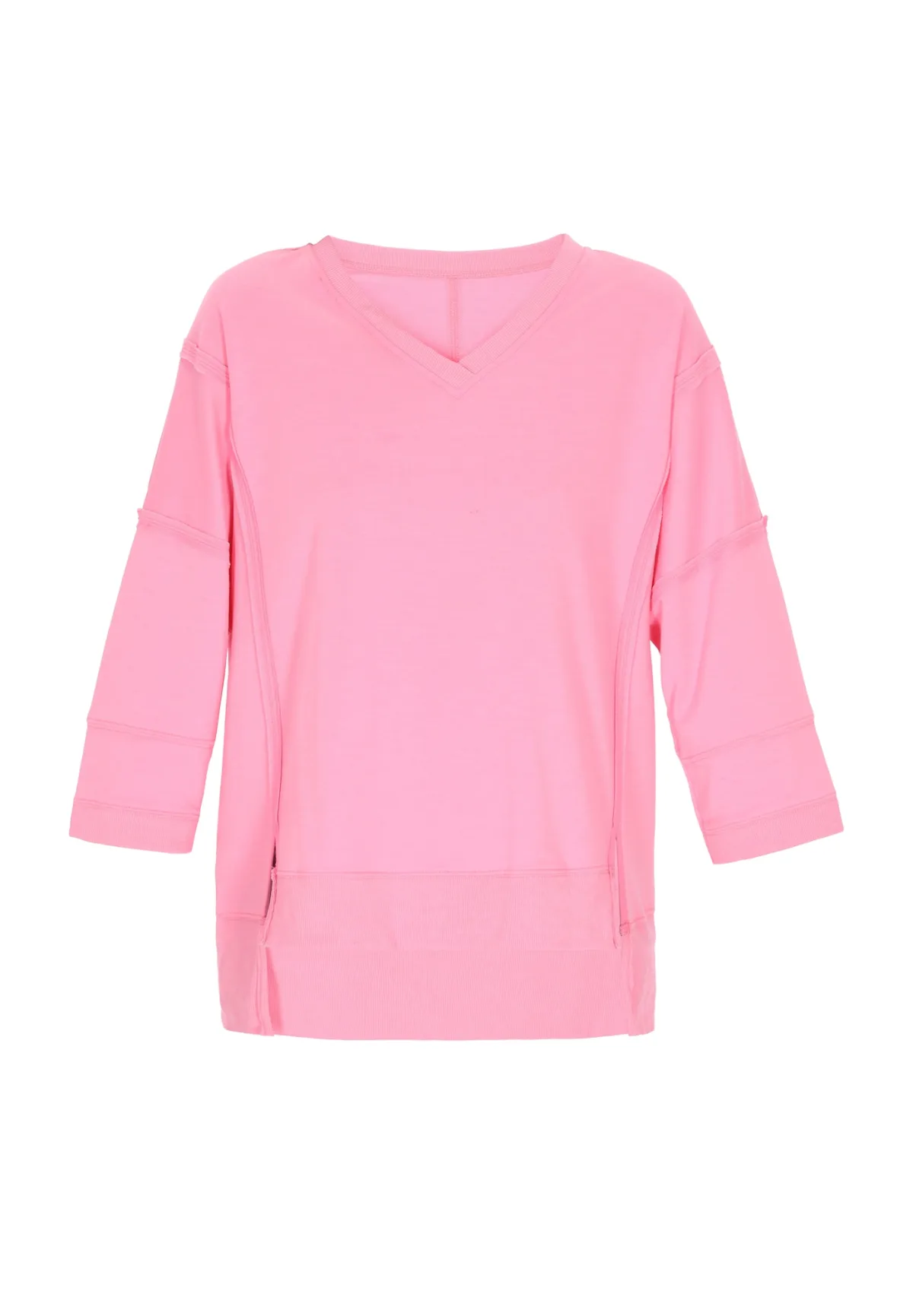 Design: Rechte zoom; Materiaal: Sweatstof; Halstype: V-hals; Motief: Effen; Extra's: Op staal naden; Pasvorm: Normale pasvorm; Armlengte: Driekwart mouw; Lengte: Normale lengte