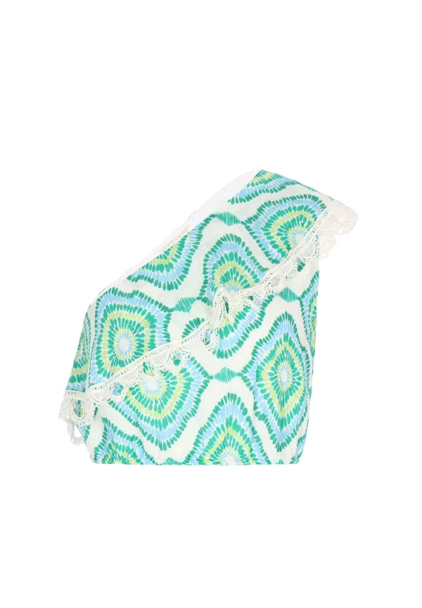Design: Elastische taille/zoom; Materiaal: Viscose; Soort bandjes: One-shoulder; Details: Kant, Volant, Gedrapeerd; Extra's: All-over patroon; Pasvorm: Normale pasvorm; Armlengte: Mouwloos; Lengte: Korte pasvorm
