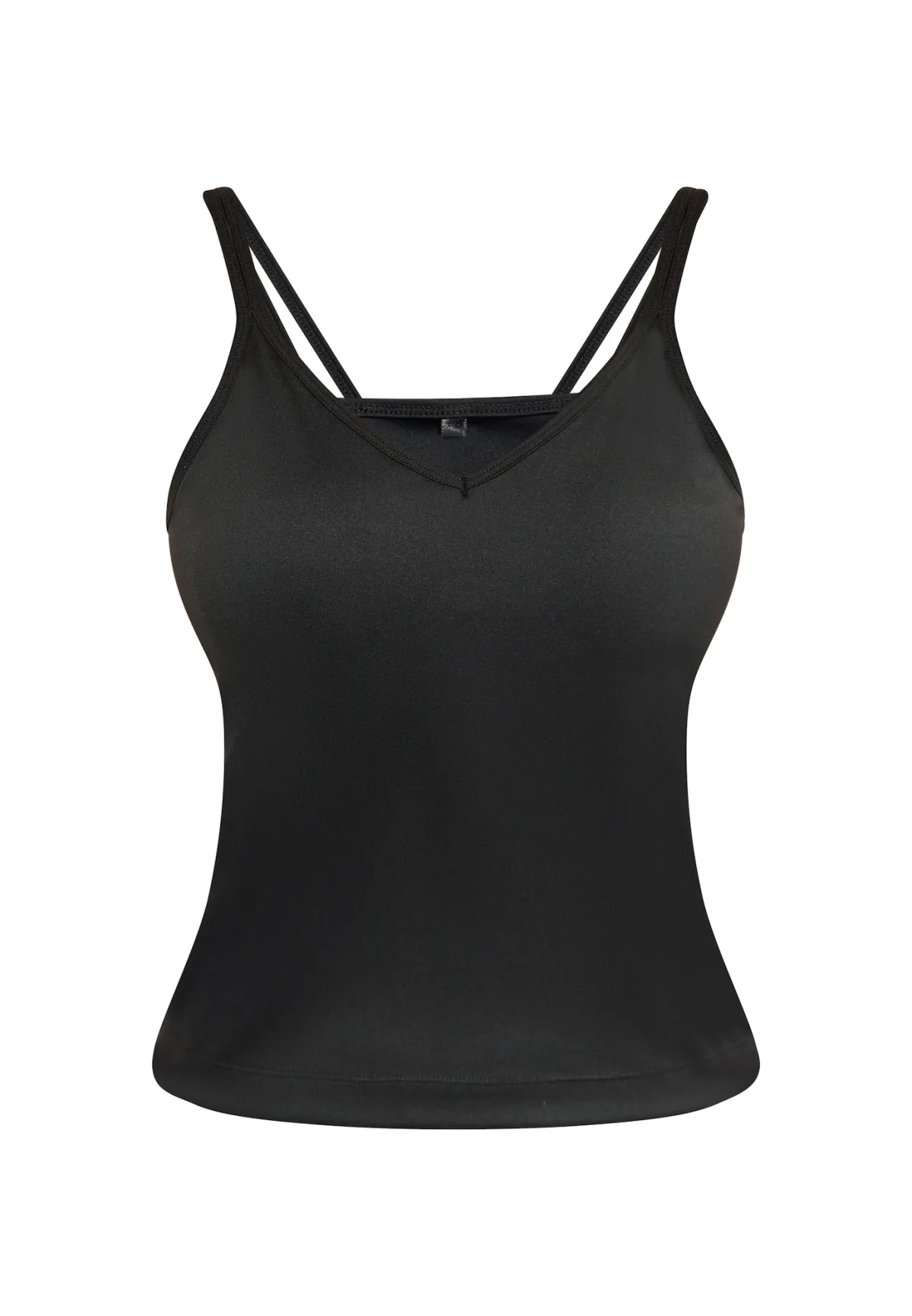 Design: Gevoerde zoom/rand, Ingelegde kraag; Materiaal: Jersey; Halstype: V-hals; Motief: Effen; Soort bandjes: Spaghettibandjes; Extra's: Op staal naden, Voelt zacht aan; Pasvorm: Slanke pasvorm; Armlengte: Mouwloos; Lengte: Normale lengte