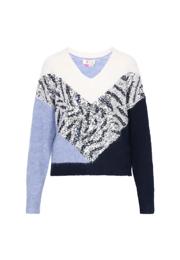 Design: Geribbelde kraag; Type sluiting: Slip; Materiaal: Knitwear; Halstype: V-hals; Motief: Color-Blocking; Details: Pailletten; Extra's: All-over patroon; Pasvorm: Normale pasvorm; Armlengte: Lange mouw; Lengte: Normale lengte
