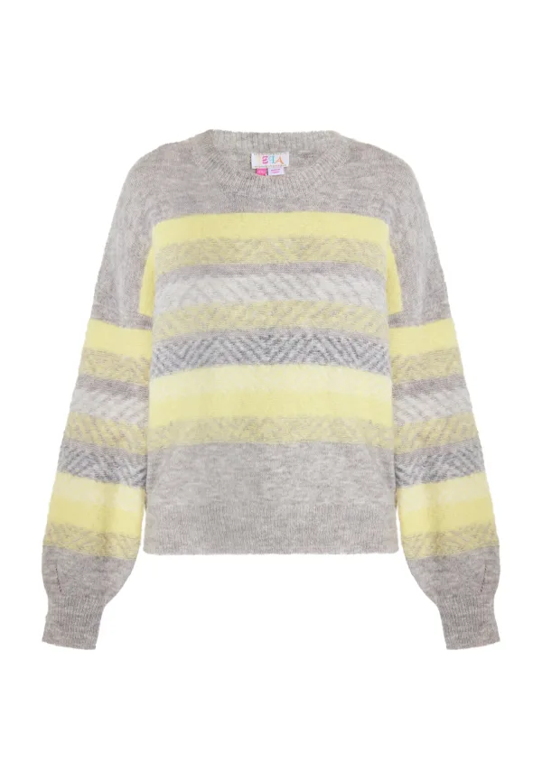 IZIA Trui ‘Eyota’ lichtgeel / grijs gemêleerd / wit