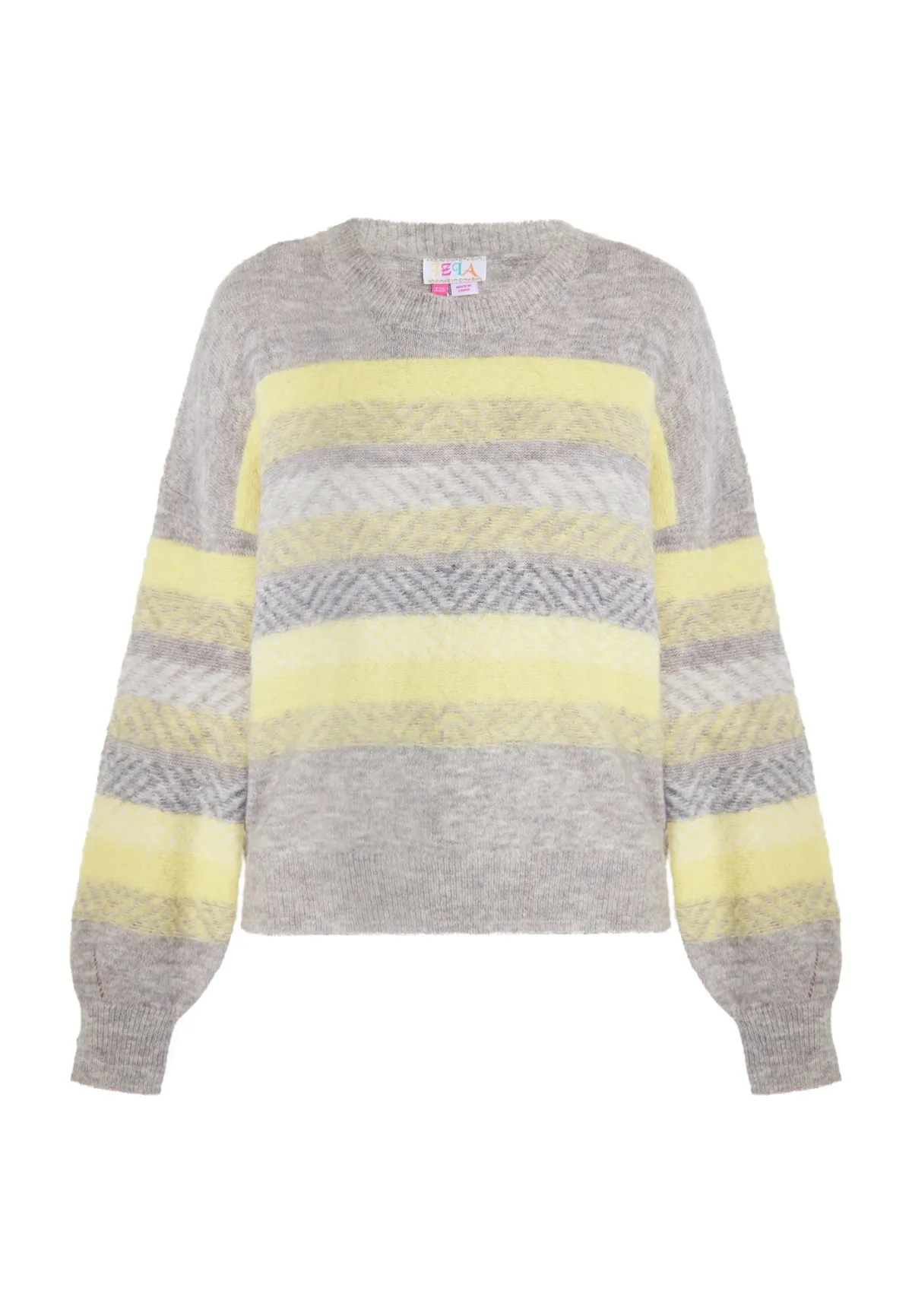 Specificaties: IZIA Trui ‘Eyota’ lichtgeel / grijs gemêleerd / wit