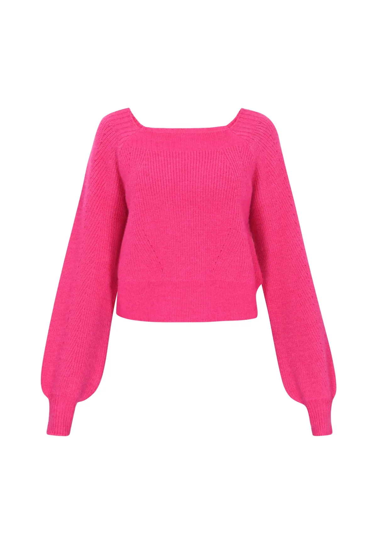 Design: Raglanmouwen, Geribd ceintuurtje; Type sluiting: Slip; Materiaal: Knitwear; Halstype: Carréhals; Motief: Effen; Extra’s: Fully fashioned, Met textuur; Pasvorm: Losse pasvorm; Armlengte: Lange mouw; Lengte: Normale lengte