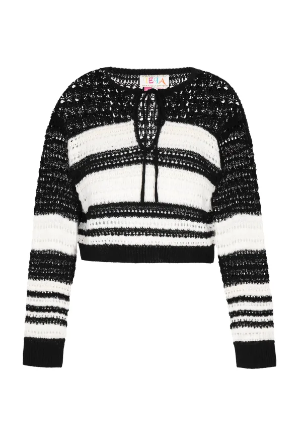 Design: Om te knopen/binden; Materiaal: Knitwear; Halstype: Ronde hals; Motief: Gestreept; Details: Mesh; Extra's: Voelt zacht aan; Pasvorm: Losse pasvorm; Armlengte: Lange mouw; Lengte: Normale lengte