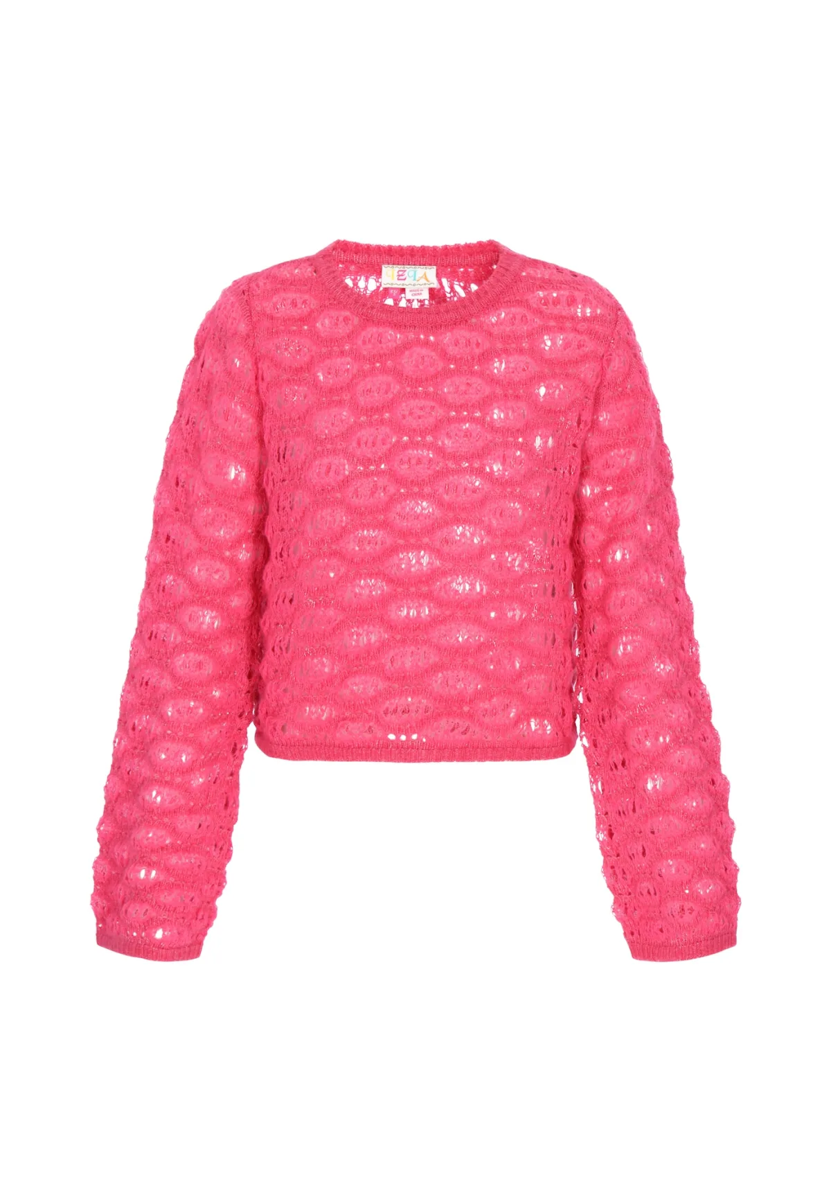 Design: Geribbelde kraag, Rechte zoom, Geribd ceintuurtje; Type sluiting: Slip; Materiaal: Gehaakt; Halstype: Ronde hals; Motief: Mélange; Details: Mesh; Extra's: Licht transparant, Fully fashioned, Met textuur; Pasvorm: Normale pasvorm; Armlengte: Lange mouw; Lengte: Normale lengte
