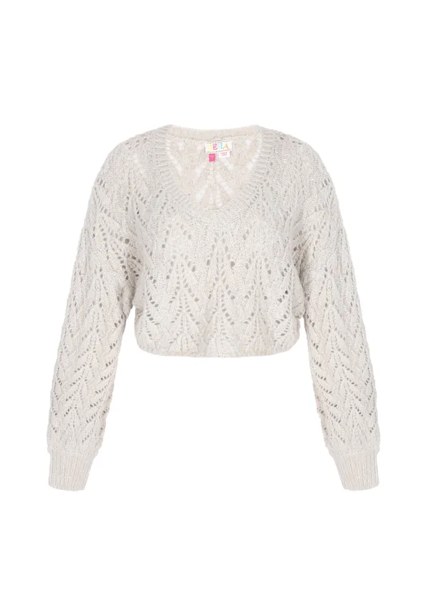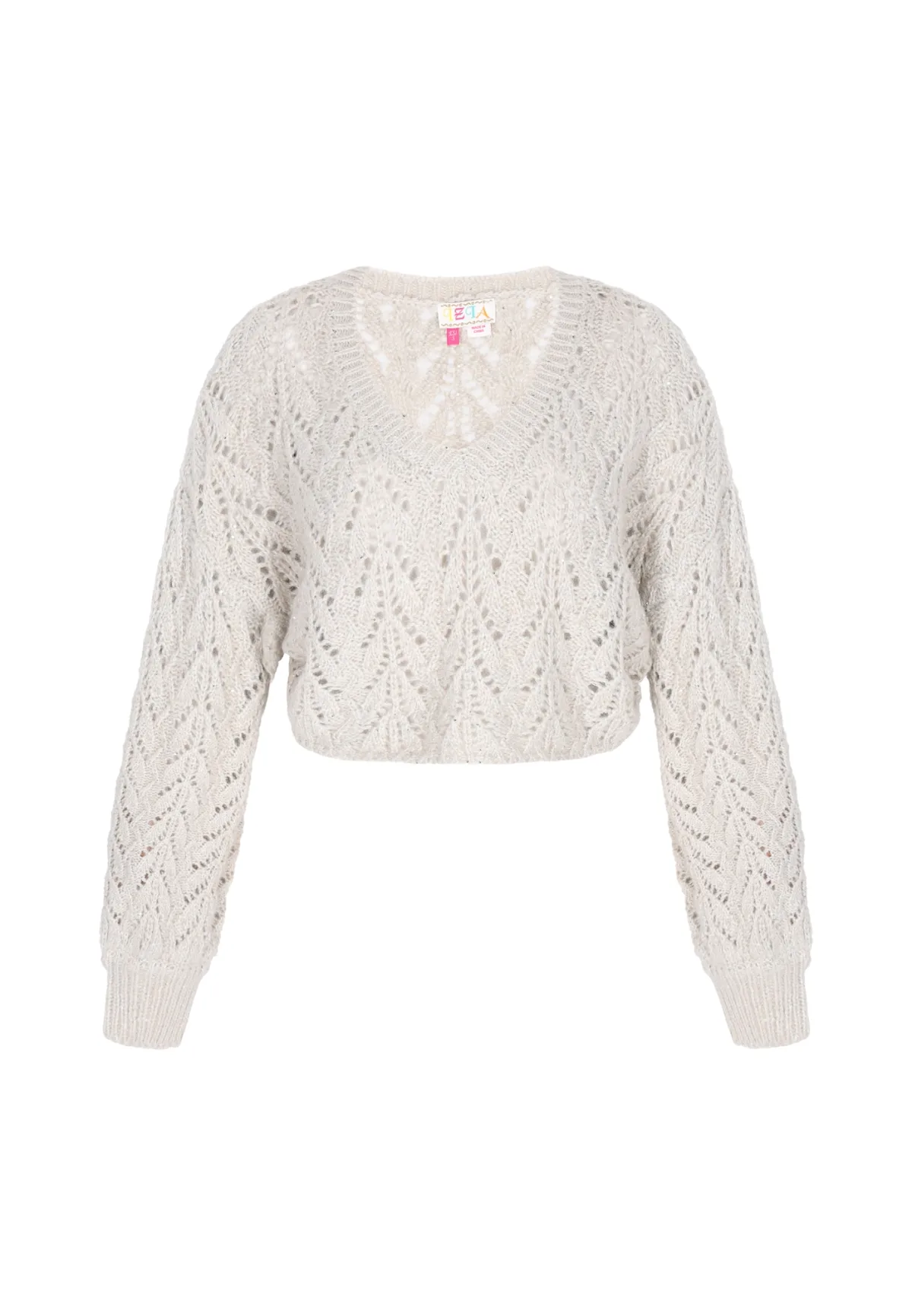 Design: Pofmouwen; Type sluiting: Slip; Materiaal: Knitwear; Halstype: V-hals; Motief: Effen; Details: Mesh; Extra's: Label patch/label flag; Pasvorm: Wijde pasvorm; Armlengte: Lange mouw; Lengte: Korte pasvorm