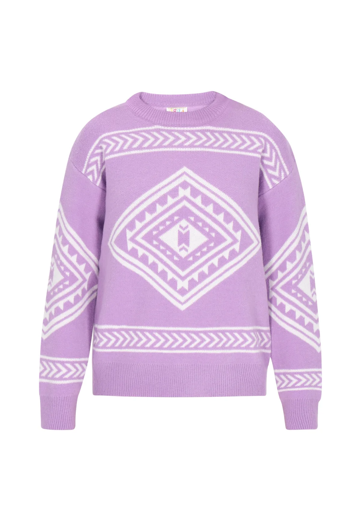 Design: Geribbelde kraag, Geribd ceintuurtje; Type sluiting: Slip; Materiaal: Knitwear; Halstype: Ronde hals; Motief: Winterse print; Extra's: Op staal naden; Pasvorm: Normale pasvorm; Armlengte: Lange mouw; Lengte: Normale lengte