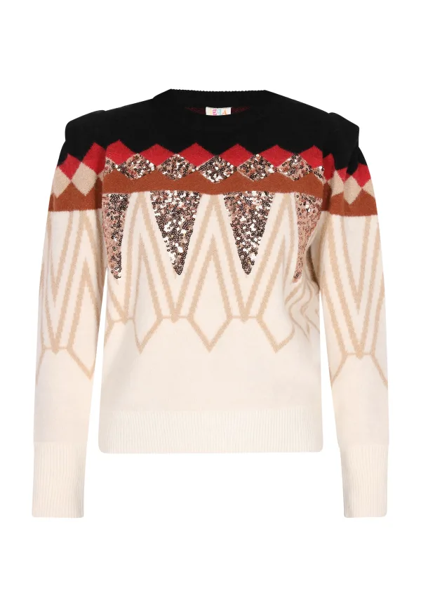 IZIA Trui lichtbeige / goud / rood / zwart Prijzen