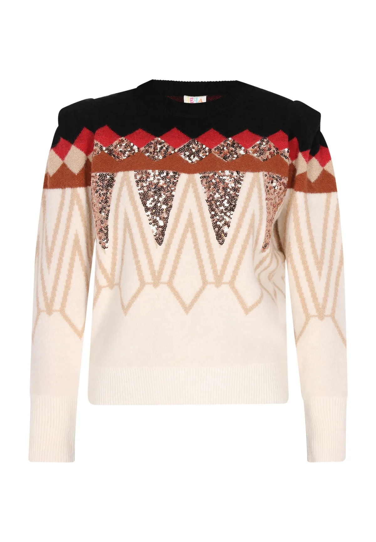 Specificaties: IZIA Trui lichtbeige / goud / rood / zwart