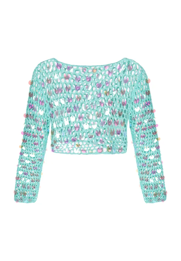 Design: Rechte zoom; Materiaal: Gehaakt; Halstype: Boothals; Motief: Effen; Details: Pailletten, Mesh; Extra's: Met textuur; Pasvorm: Normale pasvorm; Armlengte: Lange mouw; Lengte: Normale lengte
