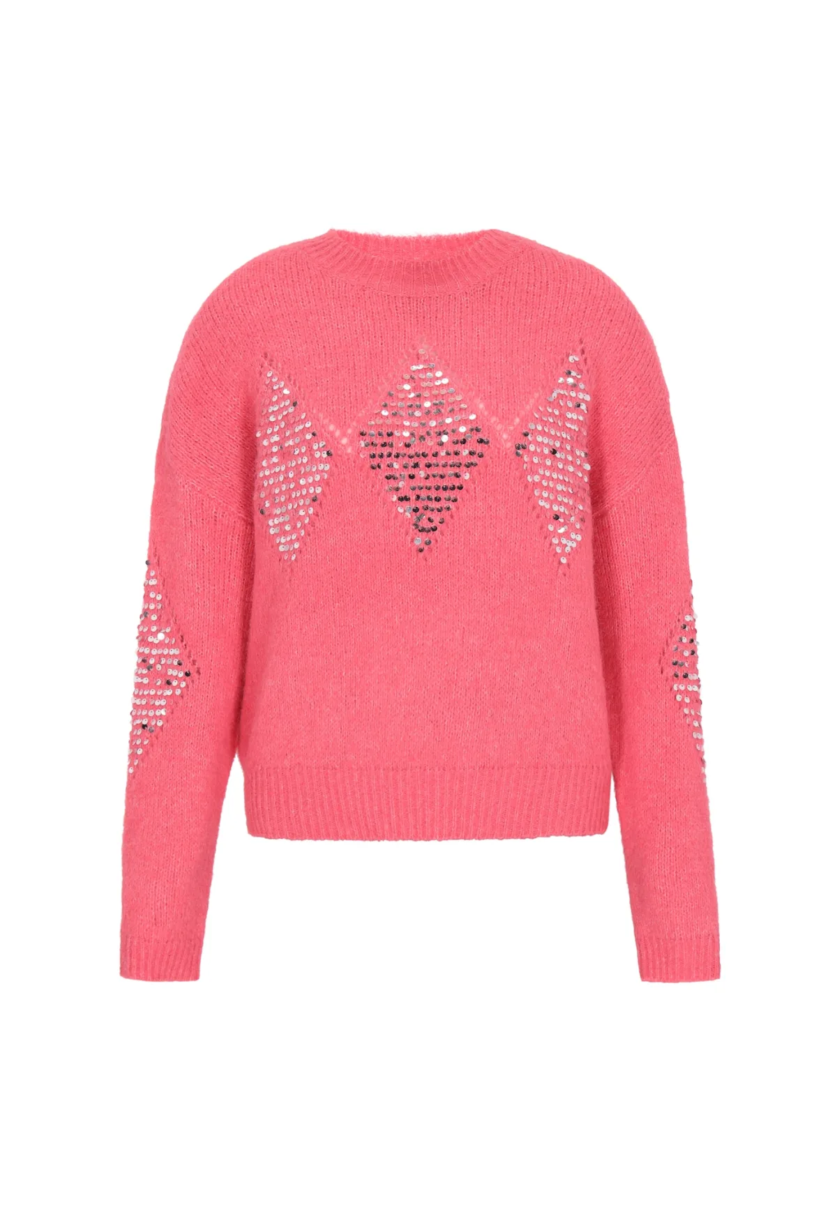 Design: Geribbelde kraag; Type sluiting: Slip; Materiaal: Knitwear; Halstype: Ronde hals; Details: Pailletten; Extra's: Op staal naden; Pasvorm: Normale pasvorm; Armlengte: Lange mouw; Lengte: Normale lengte