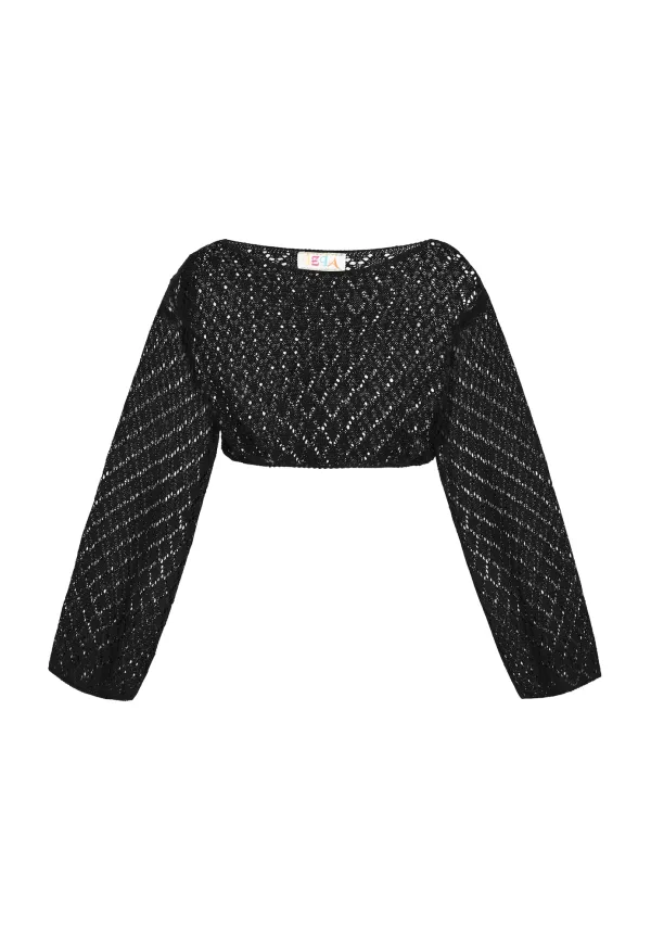 Design: Rechte zoom; Materiaal: Knitwear; Halstype: Ronde hals; Motief: Effen; Details: Mesh; Extra's: Fully fashioned, Perforatie; Pasvorm: Losse pasvorm; Armlengte: Lange mouw; Lengte: Korte pasvorm