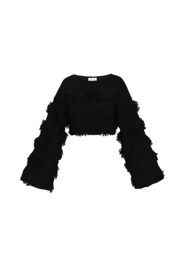 Design: Gevoerde zoom/rand; Type sluiting: Slip; Halstype: Boothals; Motief: Effen; Details: Franjes; Extra's: Lichte stof; Pasvorm: Normale pasvorm; Armlengte: Lange mouw; Lengte: Korte pasvorm