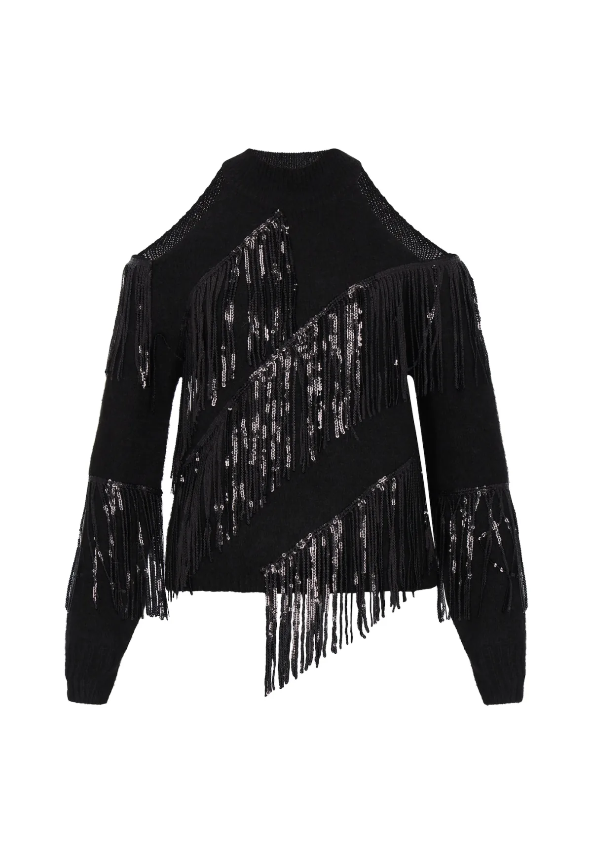 Design: Geribbelde kraag, Recht model; Type sluiting: Slip; Materiaal: Knitwear; Halstype: Opstaande kraag; Motief: Effen; Details: Cut-outs, Franjes, Pailletten; Extra's: Op staal naden; Pasvorm: Normale pasvorm; Armlengte: Lange mouw; Lengte: Normale lengte