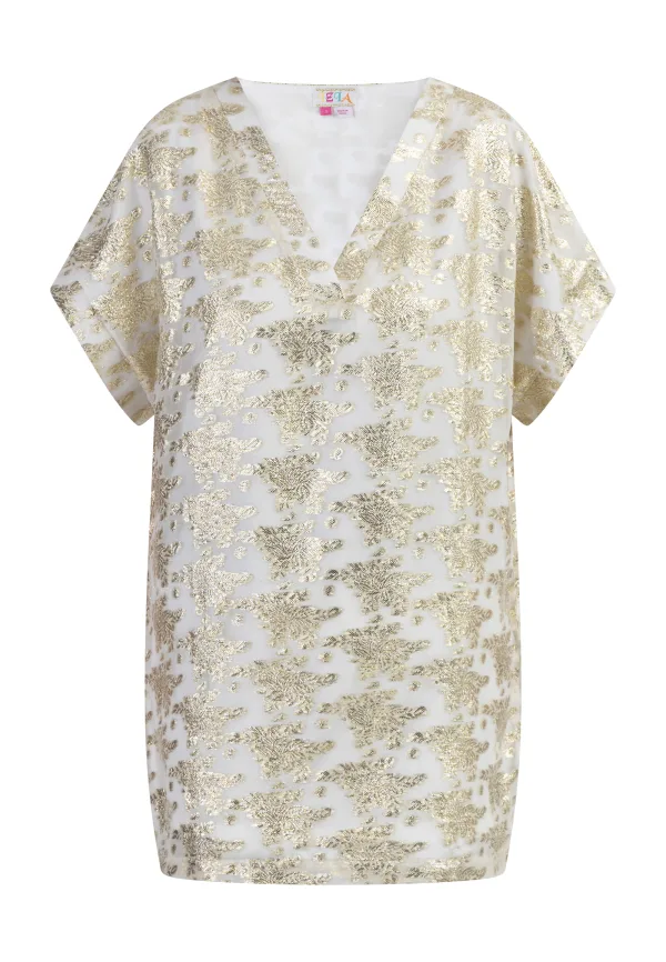 IZIA Tuniek Dames Gebroken wit met gouden bloemen