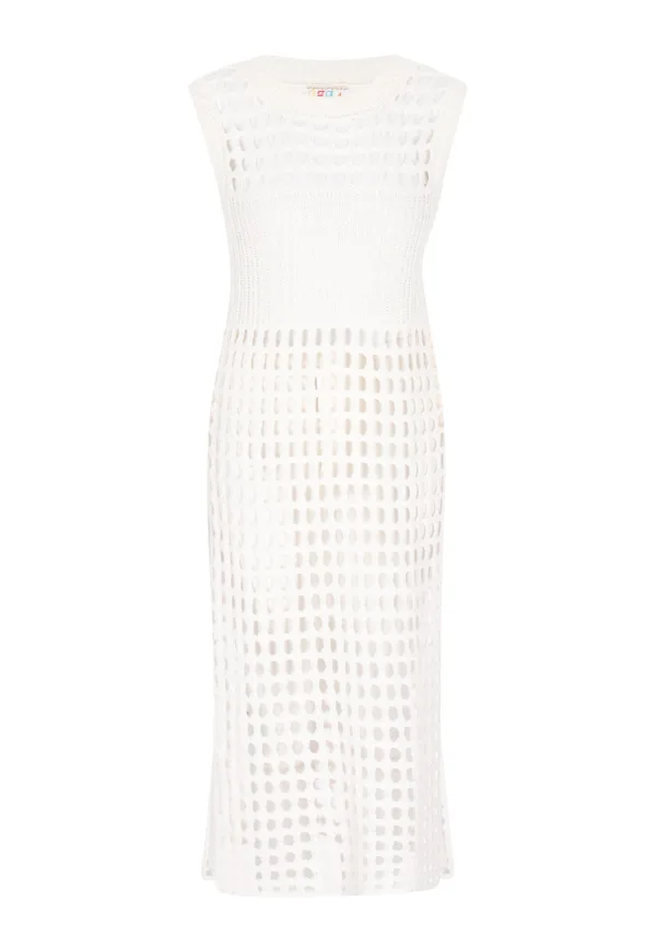 Design: Geribbelde kraag, Zijdelingse inkepingen; Materiaal: Knitwear; Motief: Effen; Kraag: Zonder kraag; Details: Mesh; Extra's: Voelt zacht aan; Pasvorm: Normale pasvorm; Armlengte: Mouwloos; Lengte: Lange pasvorm