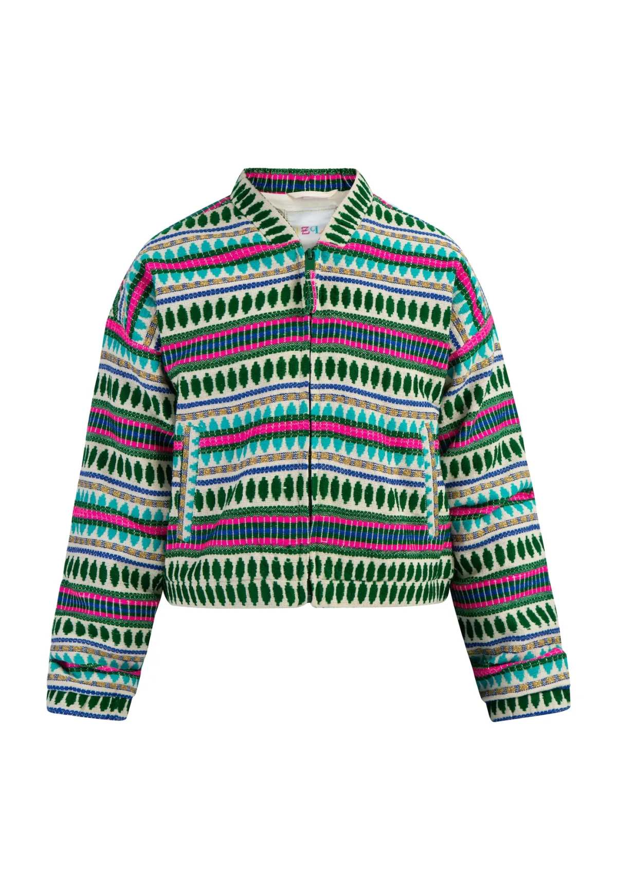Design: Gevoerde zoom/rand; Type jas: Bomberjack; Voering: Licht gevoerd; Motief: Aztec print; Extra's: Op staal naden; Pasvorm: Normale pasvorm