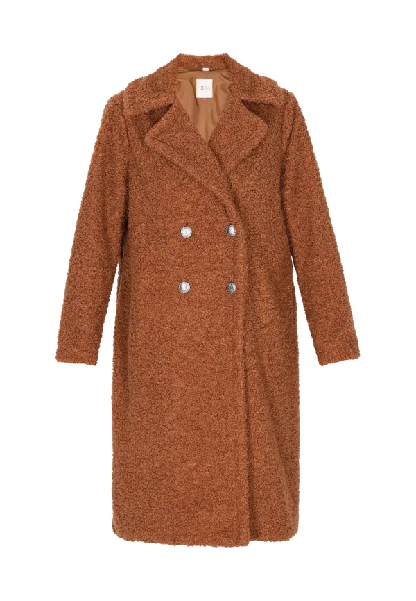 Dit trendy kledingstuk introduceert een getextureerde jas met een middellange snit en is perfect voor jong en modieus. Met zijn ingekerfde kraag en dubbele rij knopen aan de voorkant, versierd met grote ronde knopen, straalt hij verfijning uit. Jas met knopen. De lange mouwen en zachte stof zorgen voor warmte, terwijl het rechte silhouet hem een modern tintje geeft. Deze jas, compleet met een gevoerde binnenkant en minimale versieringen, is zowel stijlvol als praktisch voor dit seizoen. Jas