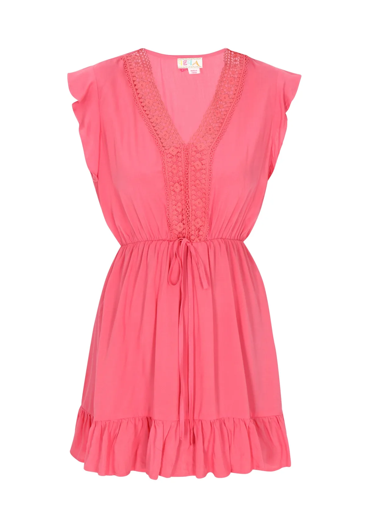 Design: Tailleband; Materiaal: Viscose; Halstype: V-hals; Motief: Effen; Details: Ruches, Volant; Extra’s: Op staal naden; Lengte: Kort/mini; Snit: Getailleerd; Pasvorm: Normale pasvorm; Armlengte: Mouwloos