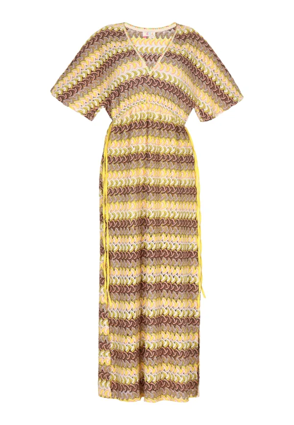 Specificaties: IZIA Zomerjurk bruin / geel / lichtroze / wit