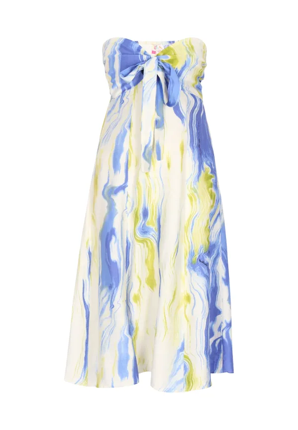 IZIA Zomerjurk ‘Festival’ blauw / appel / wolwit