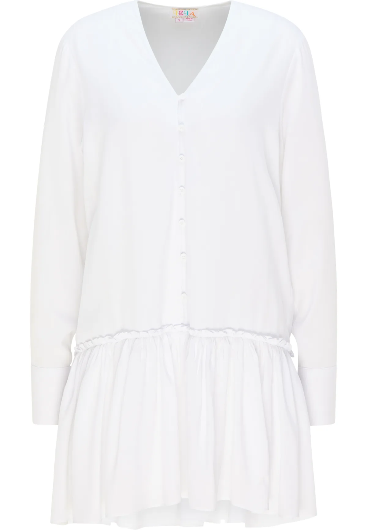 Zomergevoel! Deze zomerjurk van IZIA is de perfecte jurk voor warme dagen. De snit zorgt voor een figuurvullend silhouet. De korte rok en de klassieke V-halslijn zijn verleidelijke blikvangers. De lange mouwen, knoopsluiting en uitlopende rok maken het speelse ontwerp compleet. Met bijpassende sandalen creëer je in een handomdraai een zomerse look voor een strandwandeling of een afspraak bij de ijssalon.