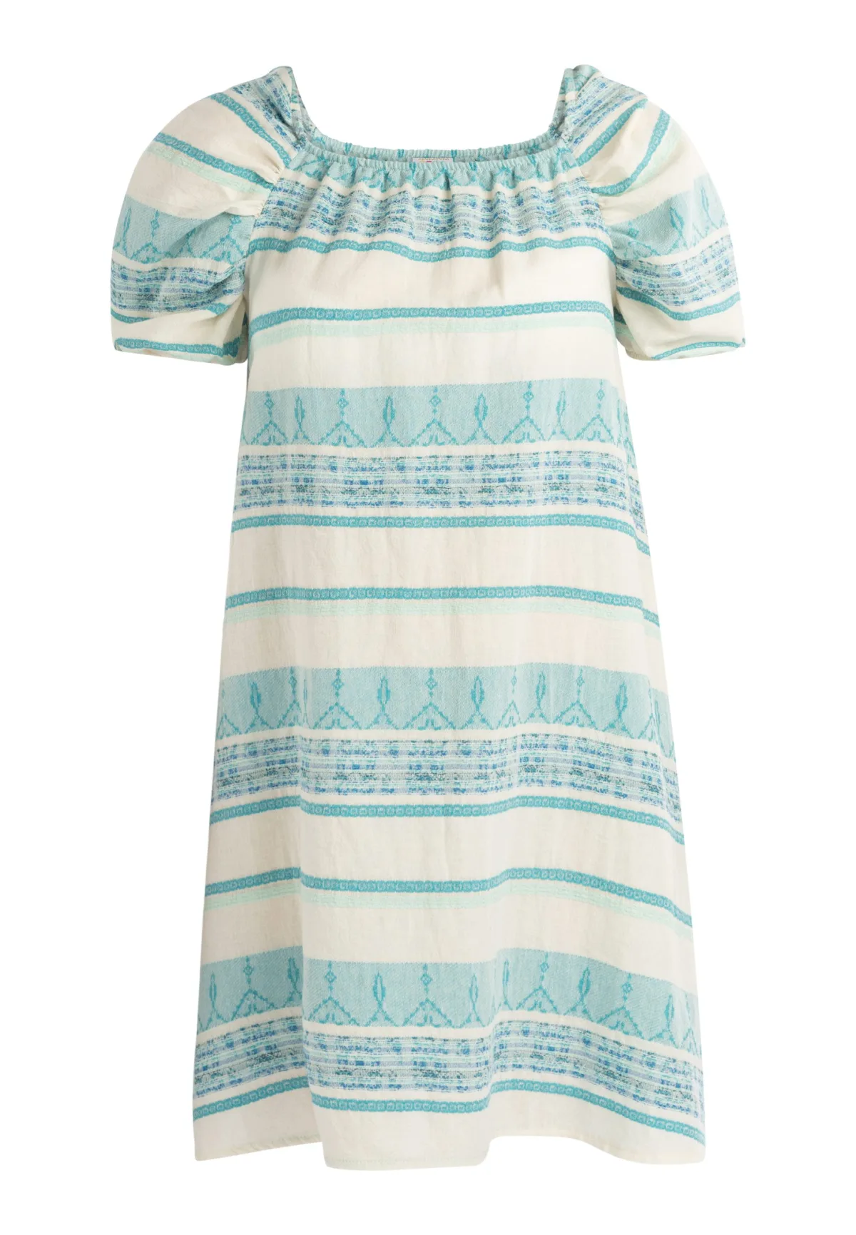 De boho zomerjurk van IZIA doet ons verlangen naar onze volgende vakantie. Dit lichtgewicht stuk is gemaakt in Italië en is perfect voor warmere dagen dankzij de lichte en luchtige katoenmix. Het losse silhouet wordt geaccentueerd door de brede elastische halslijn en de geraffineerde mouwdetails.