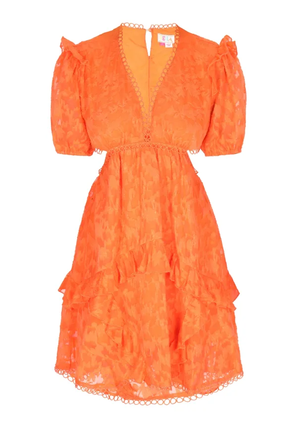 Design: Pofmouwen; Type sluiting: Knoopsluiting; Materiaal: Chiffon; Halstype: V-hals; Motief: Effen; Details: Ruches, Volant, Gedrapeerd, Backless; Extra’s: Op staal naden; Lengte: Kort/mini; Snit: Getailleerd; Pasvorm: Normale pasvorm; Armlengte: Kwartmouw
