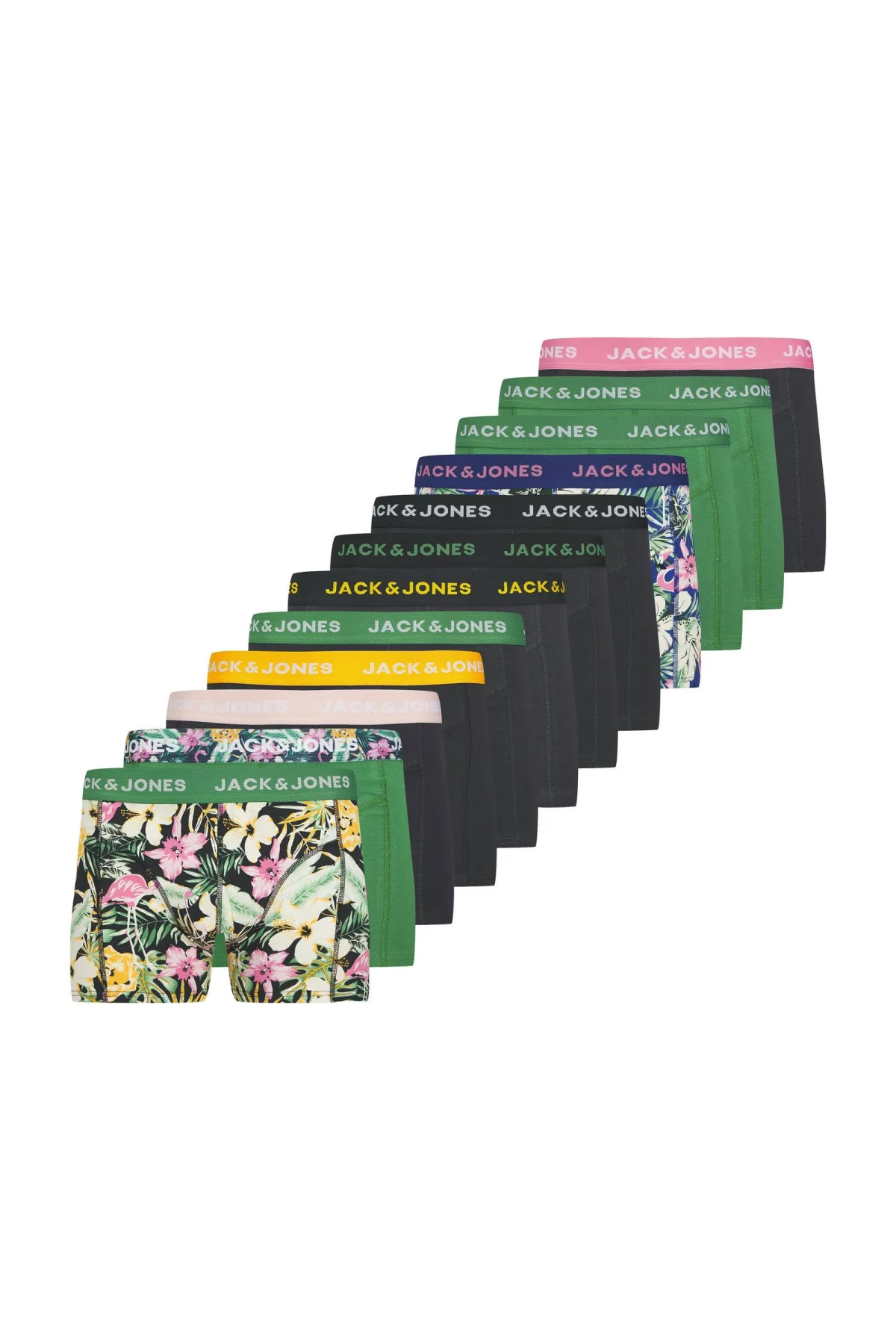 - De laagste prijs van Jack & Jones Heren boxershorts trunks jacfred flamingo 12-pack werd gevonden op 24 april 2026 15:53.