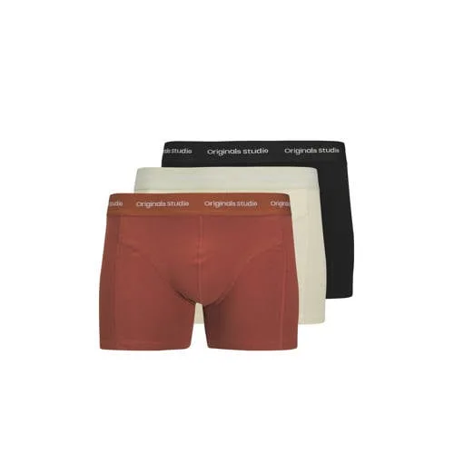 De boxershorts van Jack & Jones uit de Originals Studio-lijn bieden dagelijks comfort in een moderne, aansluitende pasvorm. Deze trunks voor heren zijn gemaakt van zacht jersey met biologisch katoen en hebben een elastische tailleband met subtiele merkopdruk. De set bestaat uit drie stuks in neutrale kleuren, perfect als comfortabele basis in je ondergoedlade.