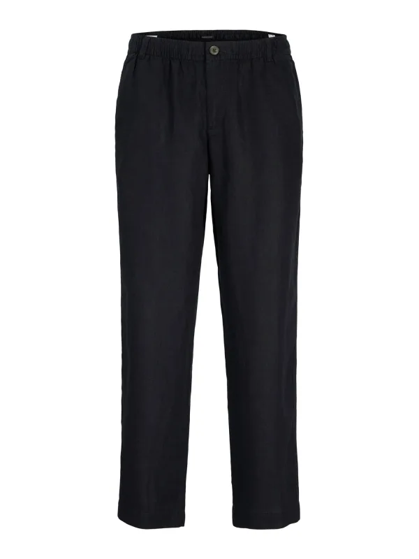Heren linnen broek van Jack & Jones Premium;zuiver linnen;straight fit;Model 'KARL LAWRENCE';elastische band;Knoop- en ritssluiting;Franse steekzakken;strookzakken aan de achterkant;bandwijdte bij maat M: 42 cm;Binnenbeenlengte bij maat M: 75 cm
