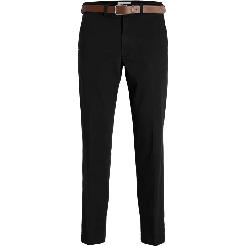 Heren chino broek van het merk Jack & Jones. De broek is gemaakt van hoogwaardig katoen. De pasvorm, in combinatie met de weeftechniek, zorgt ervoor dat de broek veel stretch en dus een mooi aansluitende pasvorm heeft. De chino wordt geleverd met de getoonde riem. Merk: Jack & JonesModelnaam: Cody Spencer Belted ChinoCategorie: heren broek (met riem)Materialen: katoenKleur: zwart