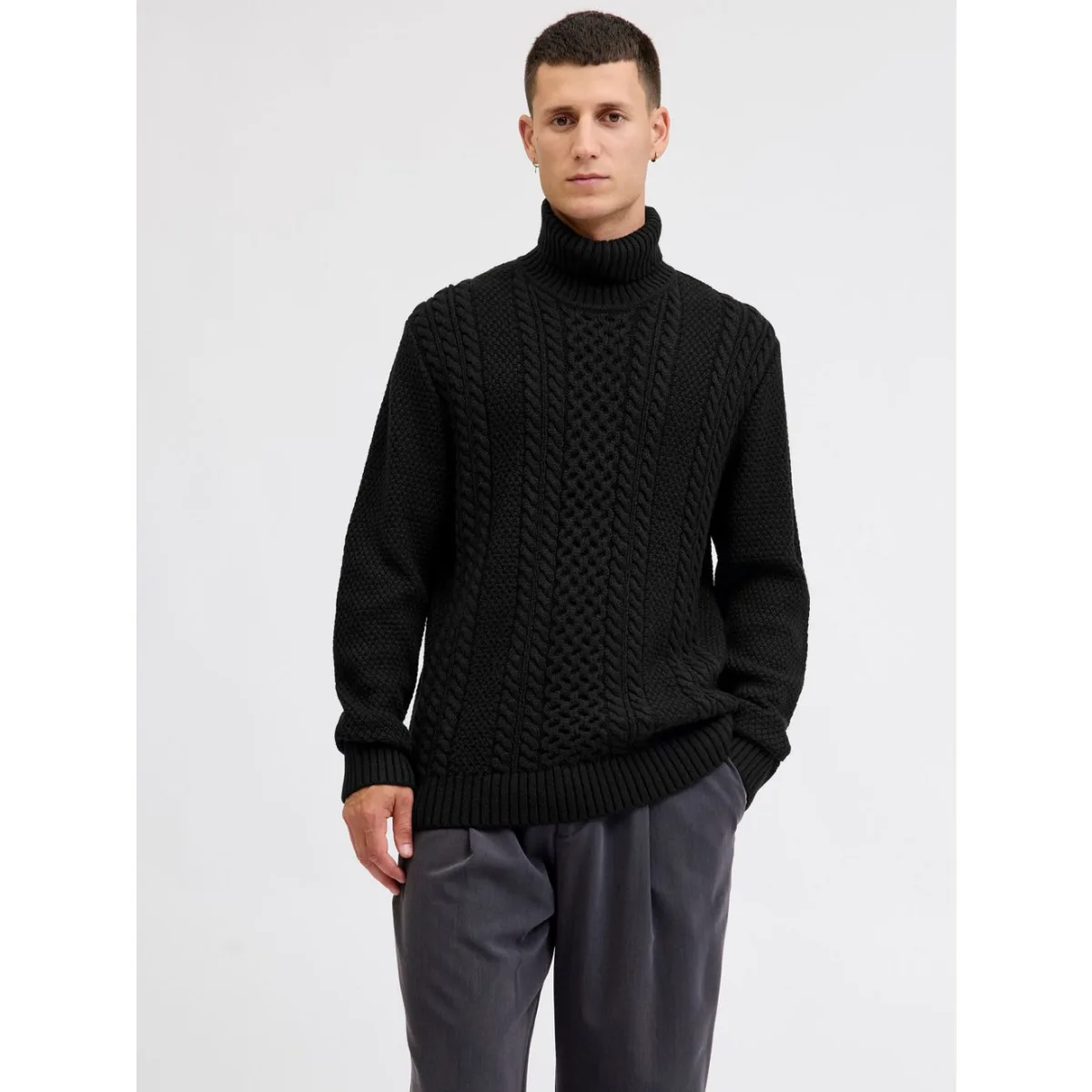 Coltrui van Jack & Jones voor heren;Materiaalmix met katoengehalte;Regular fit;Model 'PAUL';Kabelpatroon;Ruglengte bij maat M: 69 cm;Mouwlengte bij maat M: 70 cm