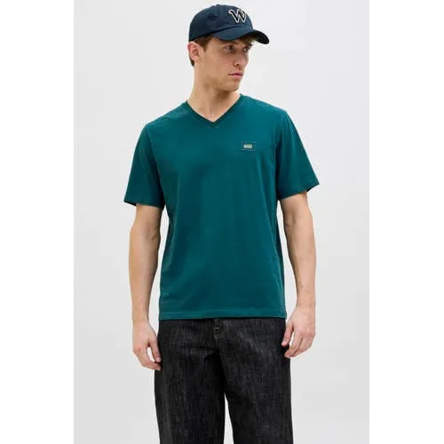Ga voor een verzorgde, casual look met dit JACK & JONES katoenen heren T-shirt uit de JACK & JONES CORE lijn. Het T-shirt heeft een moderne V-hals en een regular fit die niet te strak en niet te wijd valt. Ideaal als basis onder een vest of trui, maar ook gewoon op een jeans of chino. Het zachte katoen voelt prettig aan op de huid en is makkelijk in onderhoud, waardoor dit shirt al snel een vaste plek in je dagelijkse garderobe krijgt.Kenmerken van dit V-hals T-shirt Gemaakt van 100 procent katoen, voelt zacht en comfortabel aan Regular fit voor een ontspannen pasvorm met genoeg bewegingsvrijheid V-hals die zorgt voor een iets meer open en moderne uitstraling Kort mouwmodel, geschikt voor elk seizoen Met subtiel logo detail voor een herkenbare JACK & JONES look Valt normaal volgens het maatadvies, kies gewoon je gebruikelijke maat Praktisch in onderhoud: wasbaar op 40 graden, warm strijkbaar en drogen op lage temperatuurElke dag draagbaarDit T-shirt komt uit de 'Daily' collectie en is ontworpen voor alledaags gebruik. Draag het solo op een spijkerbroek voor een eenvoudige outfit of onder een overhemd als comfortabele laag.JACK & JONES CORE in jouw kastJACK & JONES CORE richt zich op moderne basics met een grafische en urban insteek. De items zijn gemaakt om makkelijk te combineren en sluiten aan bij een actieve, stadse levensstijl. Met dit T-shirt haal je een betrouwbaar basisstuk in huis dat je keer op keer uit de kast pakt.Een eenvoudig, draagbaar T-shirt dat moeiteloos meedraait in jouw dagelijkse routine.